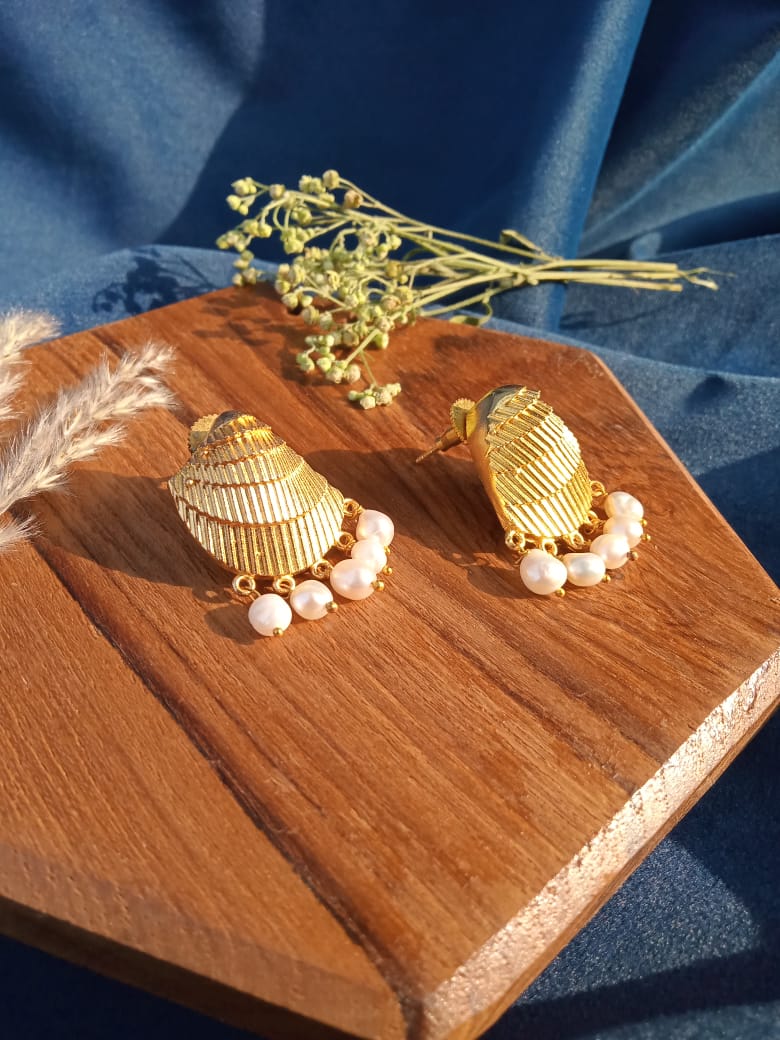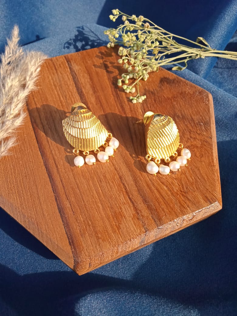 Pearl Danglers: Smooth white pearl drops add elegance and movement.